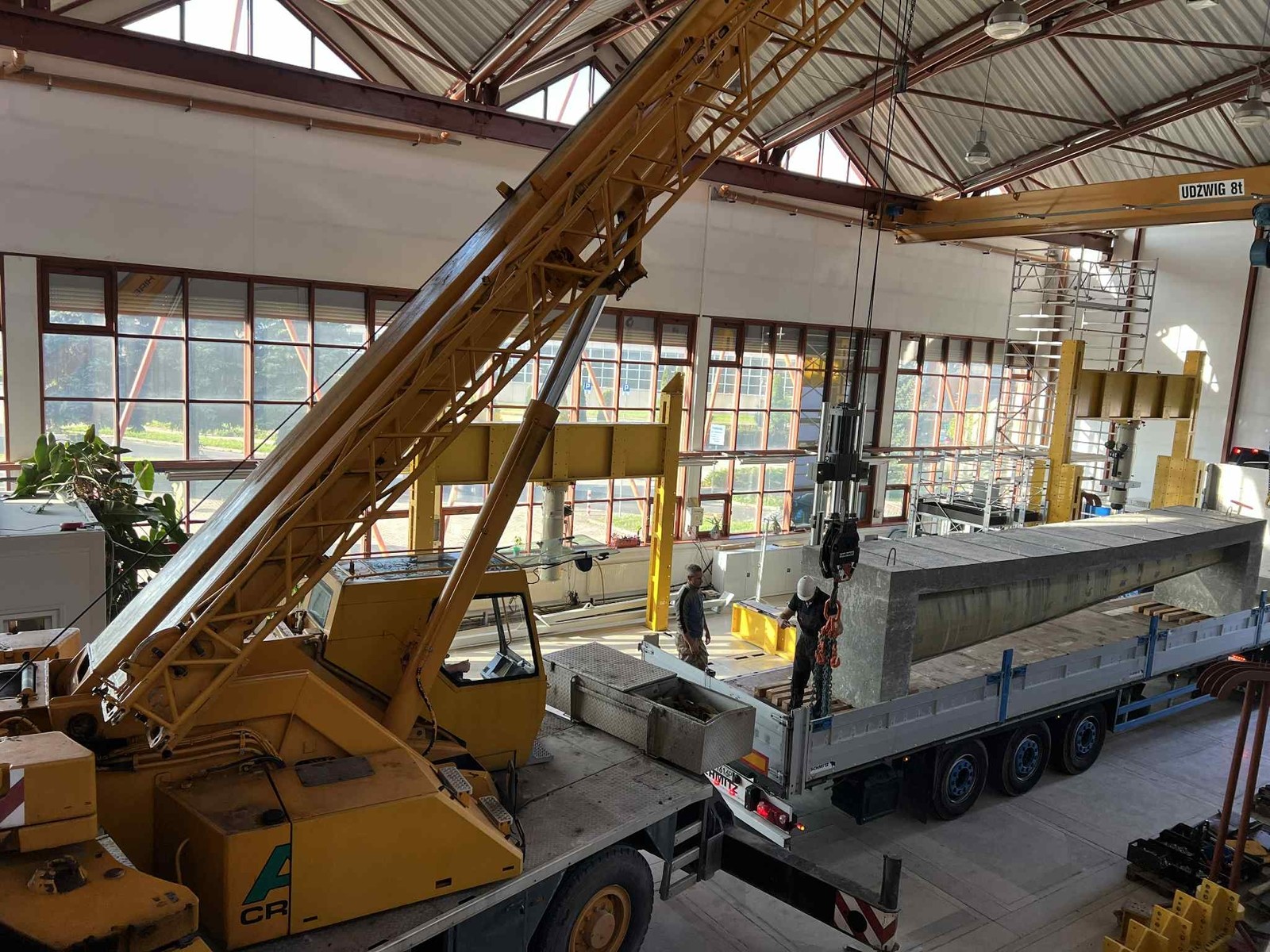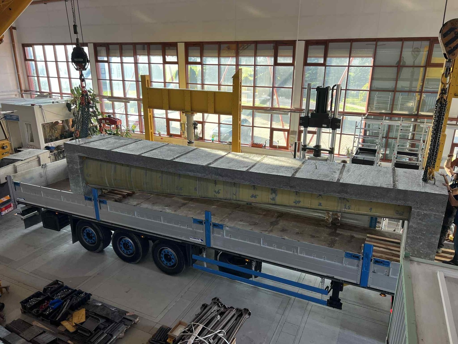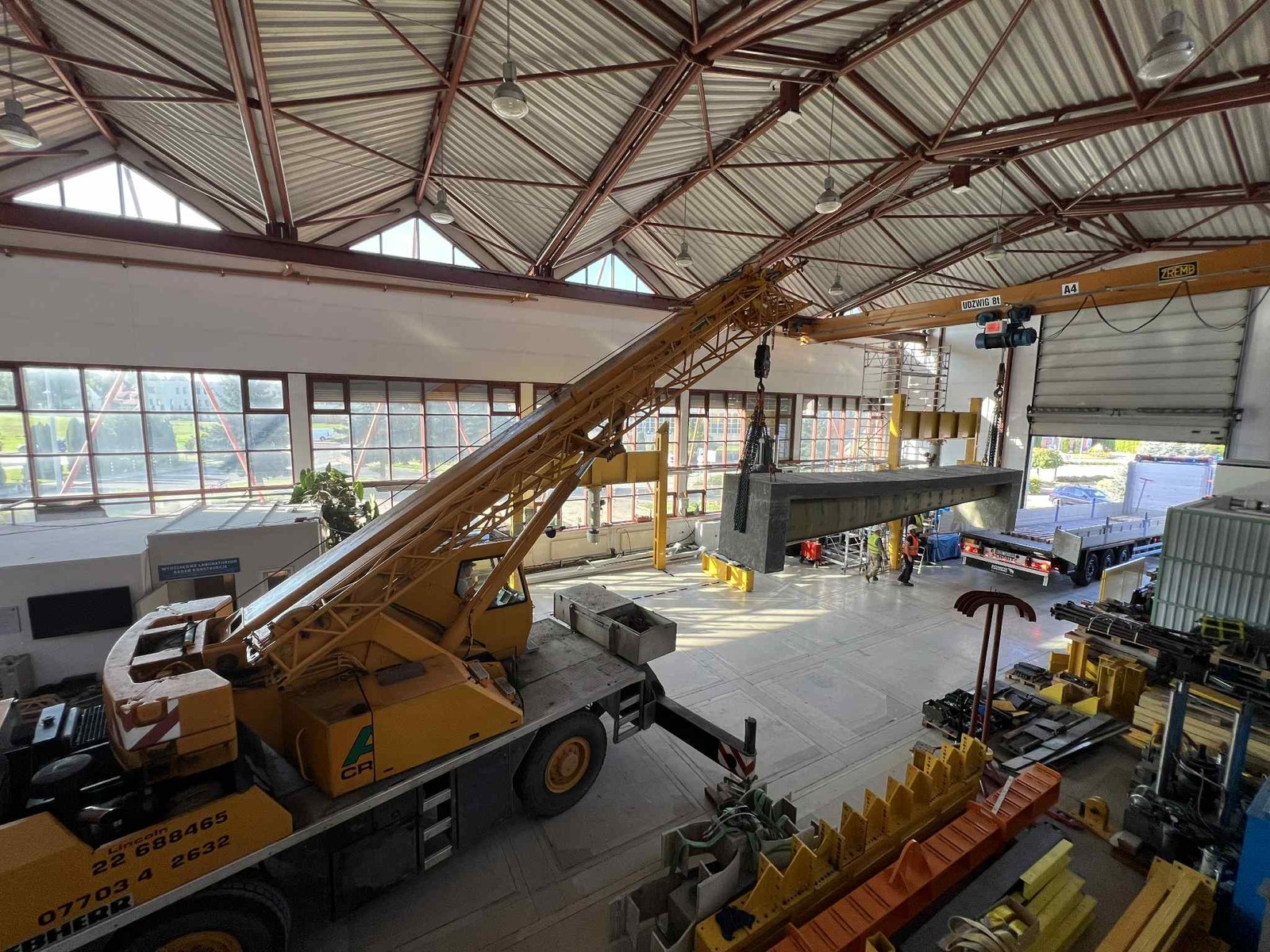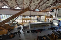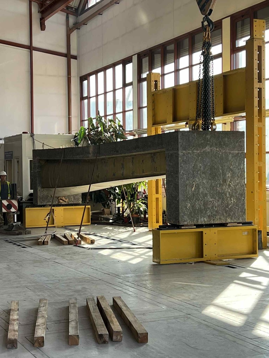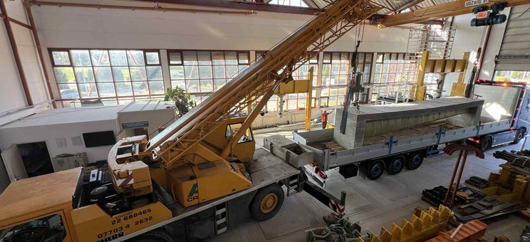 W dniu 18.09.2025 został ustawiony na stanowisku badawczych pierwszy z dźwigarów typu Vestas V-66.