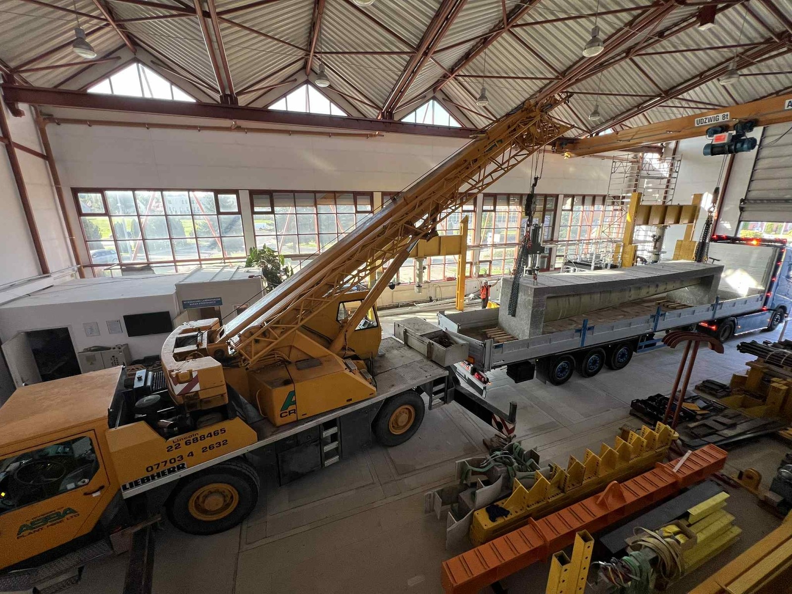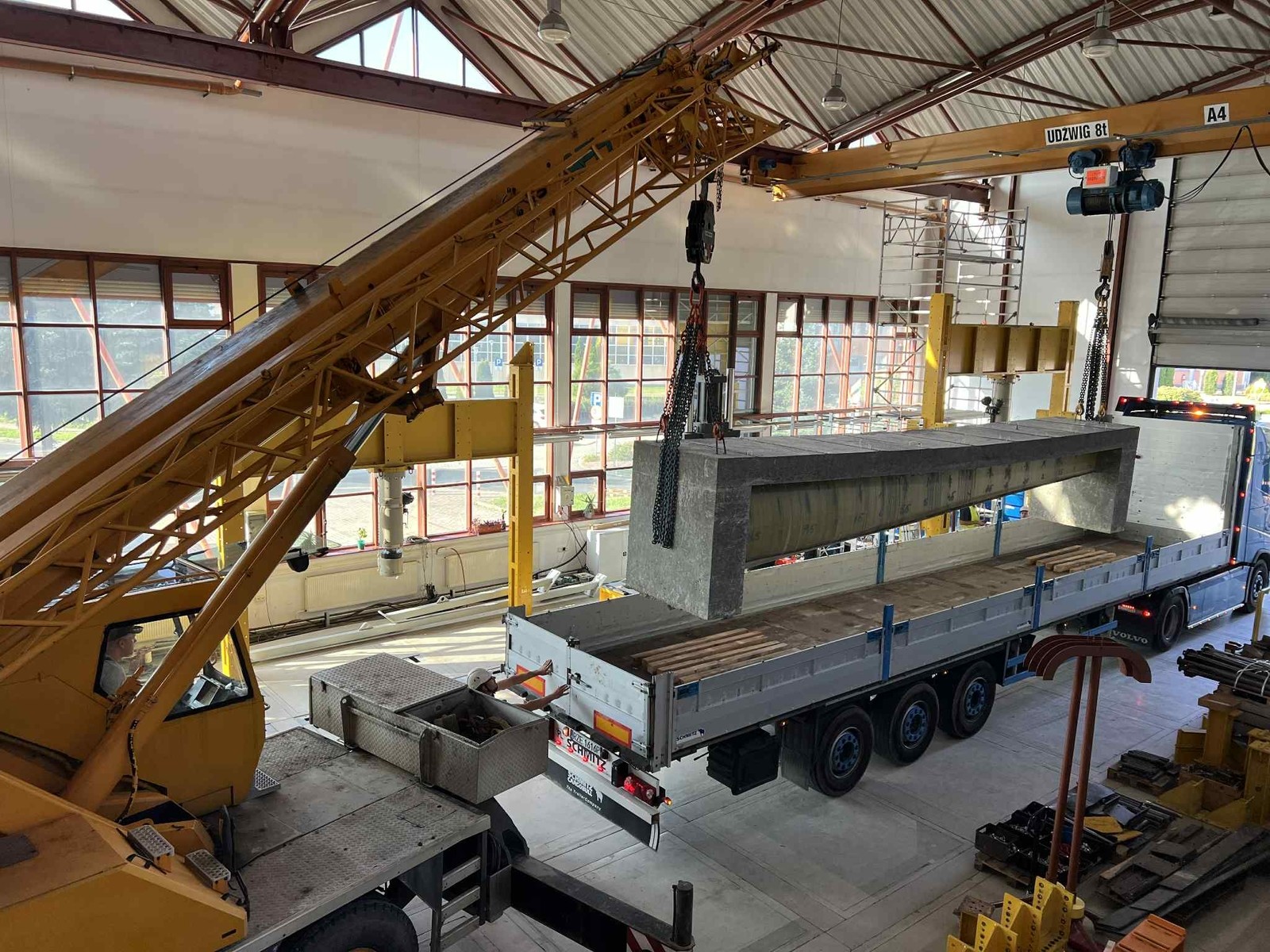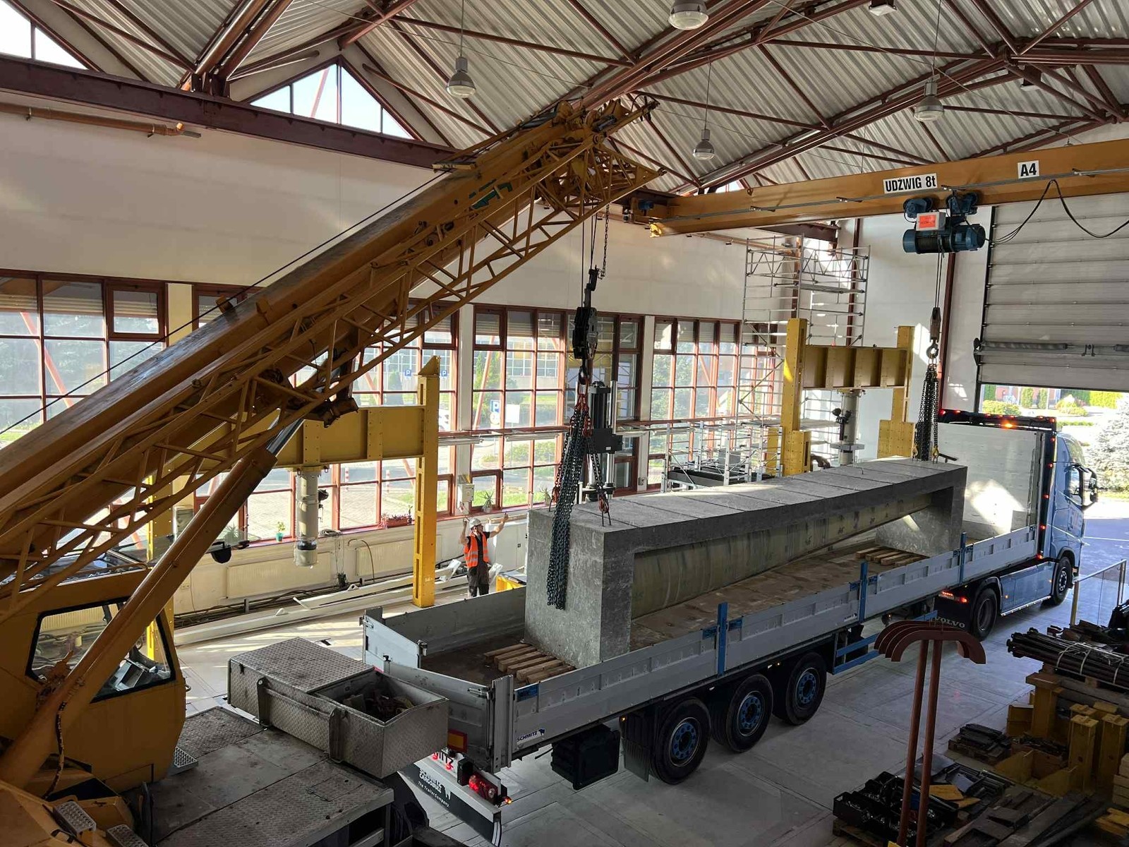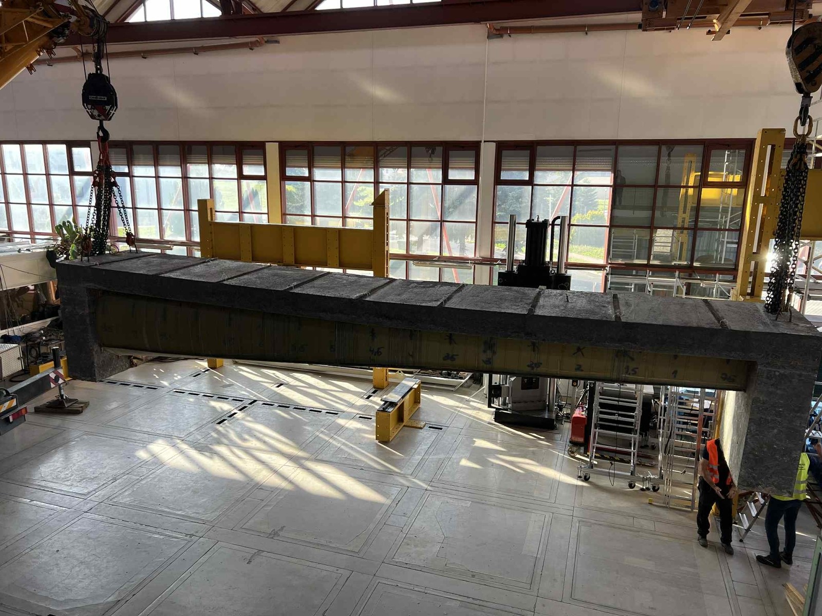 W dniu 18.09.2025 został ustawiony na stanowisku badawczych pierwszy z dźwigarów typu Vestas V-66.
